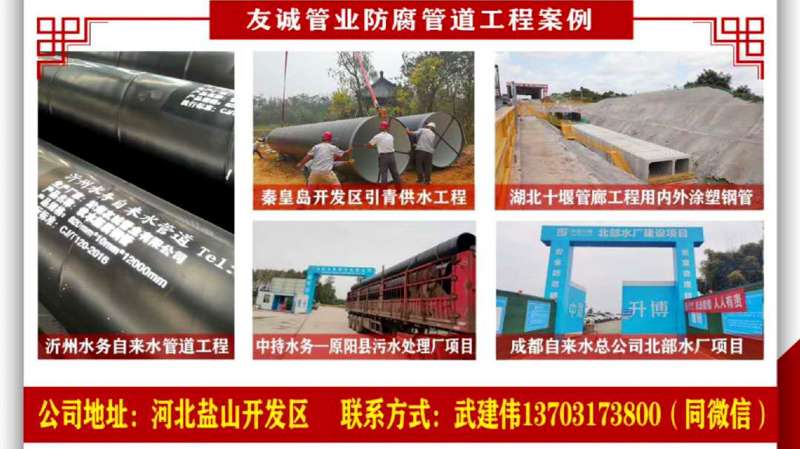 (4)大口徑環(huán)氧樹脂涂層鋼管:主要參照美國ANSI/AWWAC213標(biāo)準(zhǔn)《內(nèi)外壁熔融環(huán)氧樹脂涂敷給水鋼管》制定,雖然包含在CJ/T120標(biāo)準(zhǔn)中,但這種管道DN在600或600以上,用焊接連接,主要用于城市水廠的原水、自來水、城市中水的輸送管道。